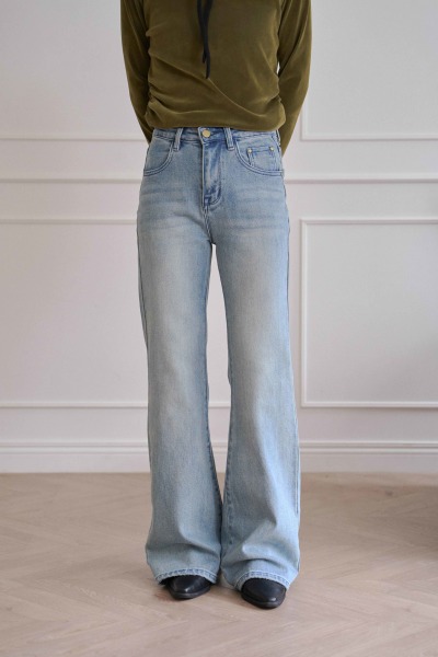 合身喇叭版型 / 刷白感造型 / 霧面銅釦設計 / 兩側有弧形口袋,後臀有貼式口袋