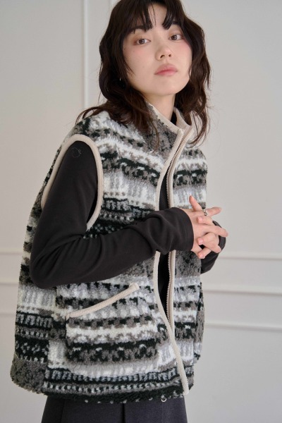 圖騰羊羔毛拉鍊背心