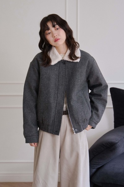 細格紋毛呢面料 / 領處拼接羊羔毛領 不可拆式 / 領處、下擺各一釦 隱藏式拉鍊 / 衣身兩直口袋 / 袖口單釦 / 有鋪棉內裡