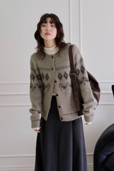 面料長纖毛毛感 / 菱格圖騰造型 / 真排釦設計 亦可做為外罩搭配 / 領口、袖口、下擺羅紋設計