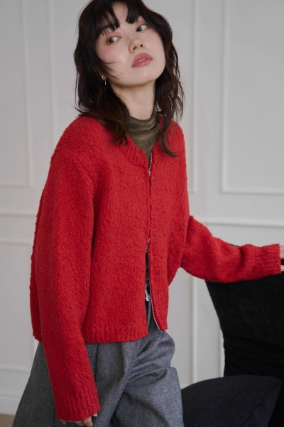 豆豆紗編織面料 / 雙頭拉鍊設計 可自由變化造型  / 領口、袖口、下擺羅紋設計